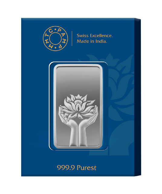 This beautiful Lotus Bar is expertly minted on 999.9+ Purest Silver. It has a beautiful motif of the Lotus flower which is a symbol of purity, health, rebirth, and spiritual enlightenment. The unmistakably elegant shape of its petals, whether white or pink gives the flower its iconic form. Its associations with many divinities are renowned throughout the world. Lotus can be found in beautifully rendered iconography through the ages.