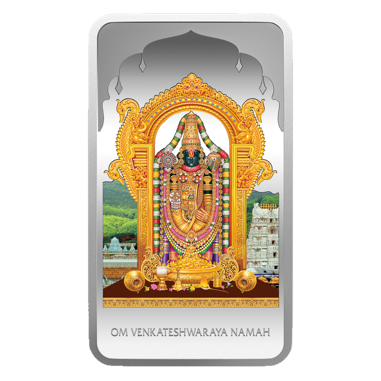 Delicately crafted on 999.9+ Purest Silver, the Tirupati Balaji coin flawlessly translates the aura, charm and divinity of the gracious Lord. The distinctive motif with its fine aesthetics, brilliant colours and an unparalleled finish, is a potent symbol of purity, transcendence and superior Finest Swiss Craftsmanship